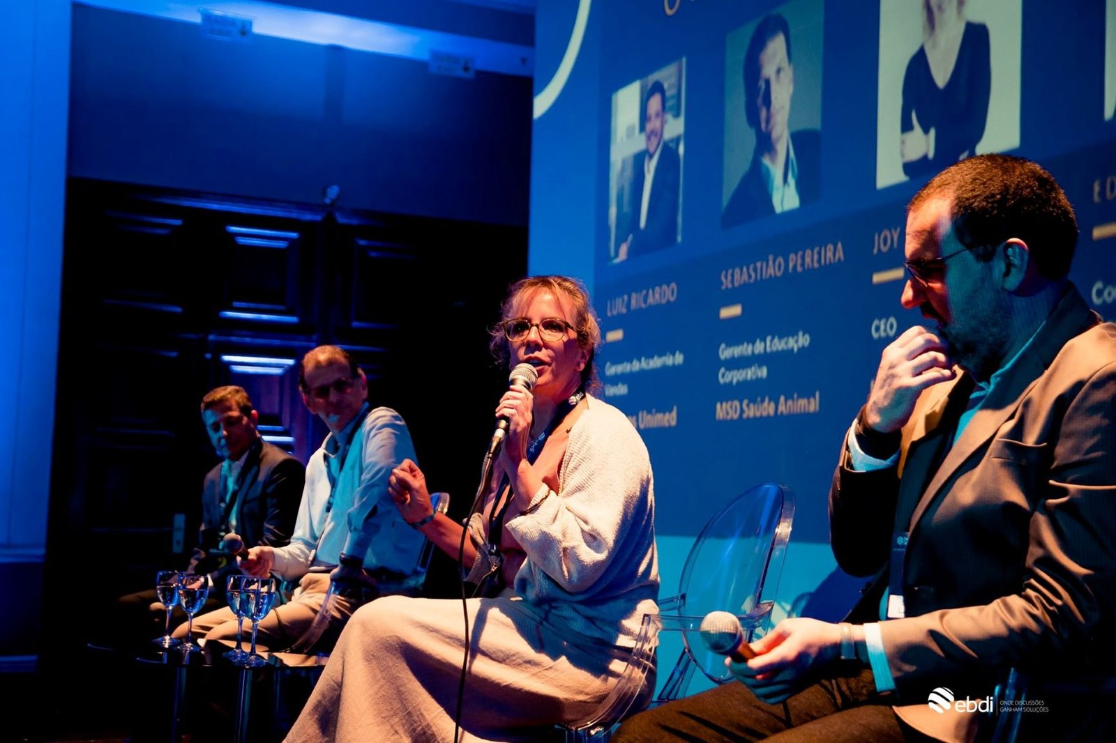 Junto com Joy, CEO da La Gracia, estavam Sebastião Faria Jr., Gerente de Educação Corporativa da MSD Saúde Animal, Ed Conde, facilitador da La Gracia e especialista em didática e compreensão, e Luiz Ricardo Araújo, Gerente da Academia de Vendas na Seguros Unimed. Em relação ao tema, ao falar sobre sua experiência na área de treinamento, Luiz destacou que “a tecnologia é importante, claro, mas como ferramenta. Antes de qualquer coisa o que vem é o ser humano”.